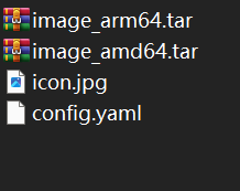 其中image_*.tar是镜像文件,arm64/amd64表示对应的硬件架构。icon.jpg属于元数据附件。config.yaml是安装包的核心,它包含如下内容: